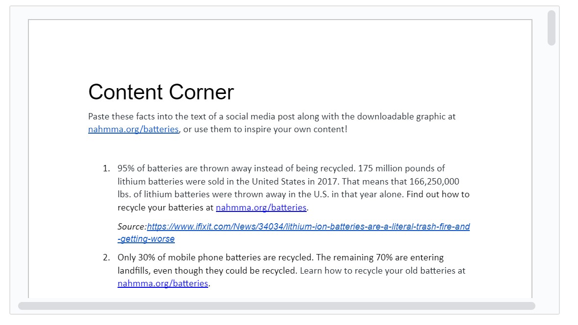 Awareness and education are essential to preventing battery safety incidents. We need your help to spread the message to your family, friends, and community on how to properly recycle batteries and why it can keep them safe. Here's what you can do: